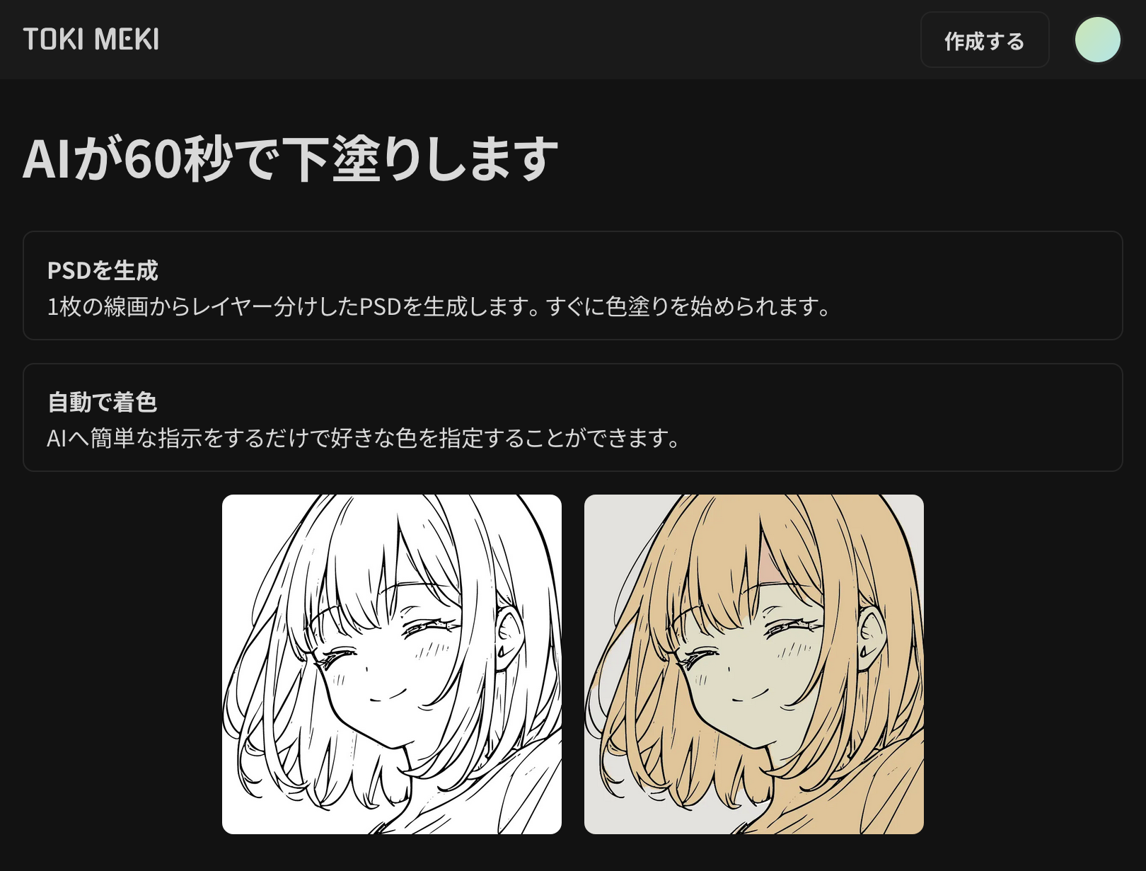 線画の画像を入力すると、AIが下塗りをしたPSDを作成するWebアプリ。(現在は稼働していません)